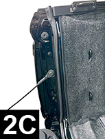 Start 1” (2.5cm) below truck bed floor (FIG 2) and attach seal to the rear corner edge of the left sidewall extension (FIG 2A). Apply light pressure to adhesive and continue up. When nearing top of sidewall, gradually rotate seal 90° counter clockwise so that bulb is facing inward and the taped side of seal is flush with the sidewall at the top (FIG 2C and 2D). Cut excess seal. Close tailgate. If you see light through the sidewall, make adjustments by removing seal and repositioning. Do not apply firm pressure to adhesive. Duplicate for right side.