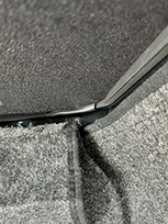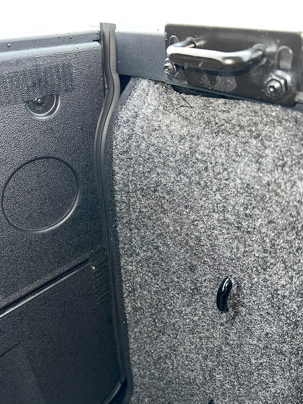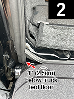 To evaluate the best positioning for the tailgate gap, cut a 1” (2.5cm) test piece and align the top of bulb with lower ridge of the truck bed floor and adhere. Stand to the side of truck and raise tailgate until the bulb makes contact with tailgate. If the bulb rolls downwards just before closing tailgate, so that you can see the tape, then seal has rolled and compressed too much. This can cause added stress to the adhesive and possible separation.