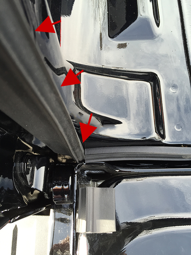 be removed and repositioned prior to applying very firm pressure (25lbs). Pictures shown below are for the left sidewall and tailgate gap.