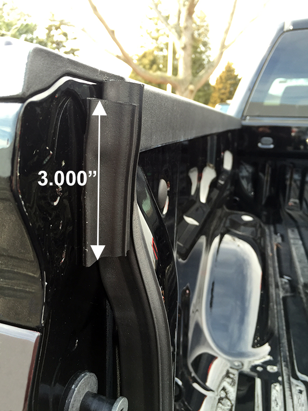 Cut and attach a 4.250" piece to side of tailgate near the top. Apply light pressure to adhesive. Duplicate for the right side.