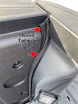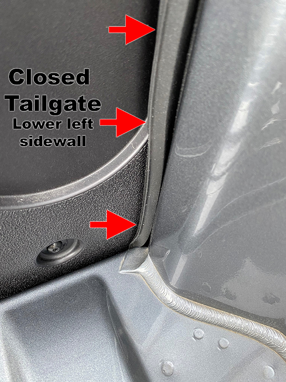 Close tailgate. If you see light through the sidewalls, make adjustments by removing the seal and repositioning. If there is still light then cut pieces of seal, as needed and attach to sidewalls and/or tailgate. Do not attach adhesive to seal. |