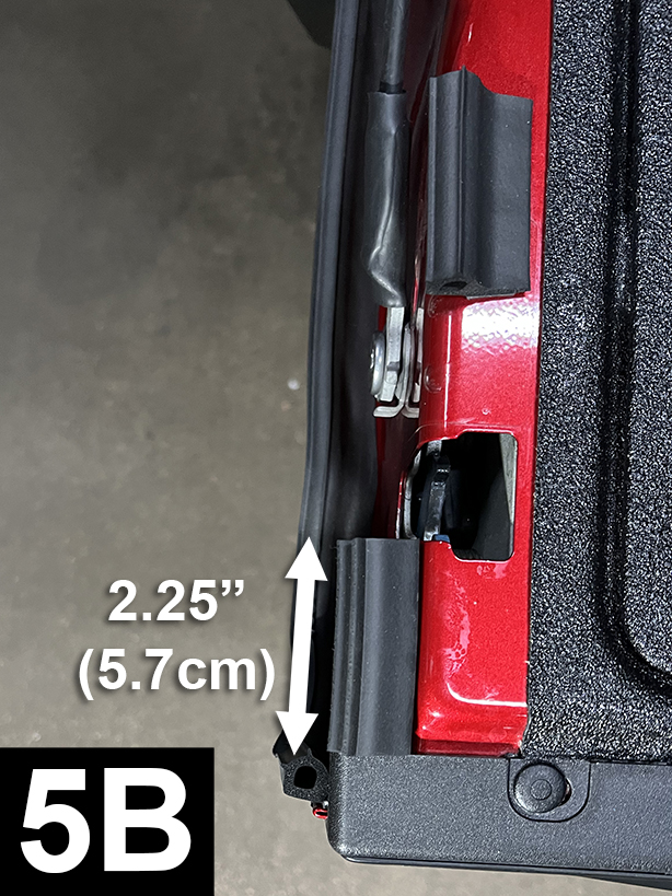 Cut a 2.25" piece of Large and attach to the side of tailgate (FIG 5A & 5B). Position bulb side up. Apply light pressure.