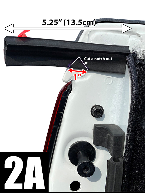 STEP 5: Attaching 2.25"(5.7cm) piece of Large Tailgate Seal to side of tailgate.