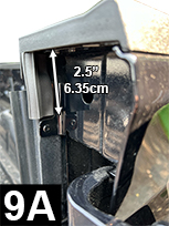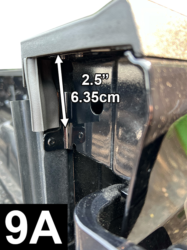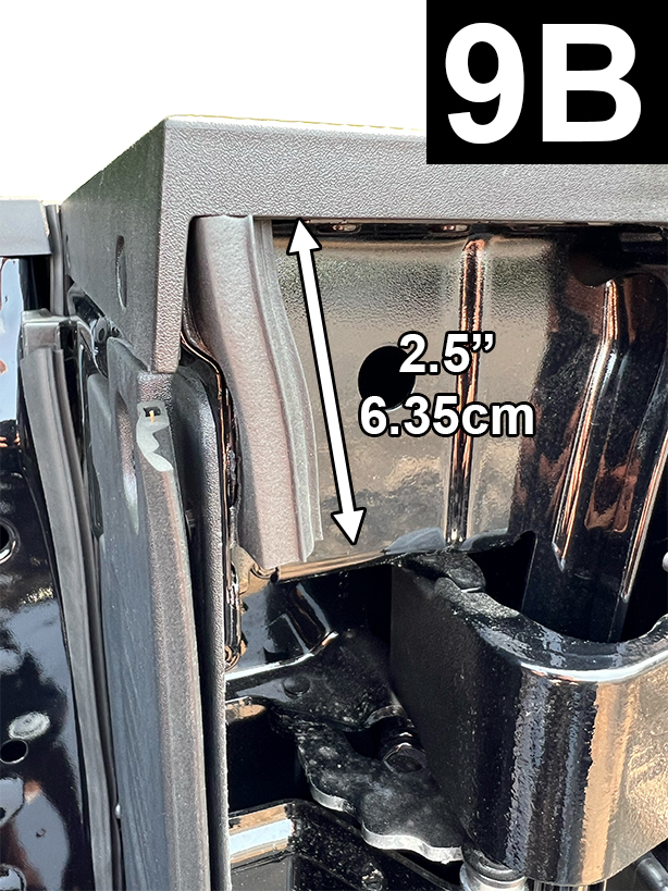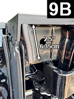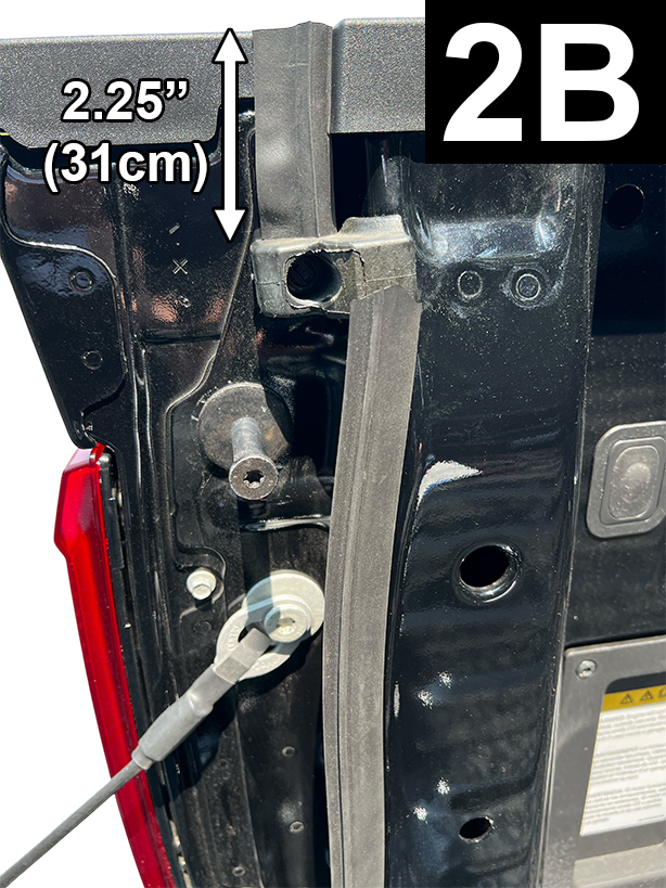 Cut a 2.500” piece of Standard Tailgate Seal. Determine position, before attaching seal, as shown in FIG 9A and 9B. Before removing liner and attaching seal, apply Adhesion Promoter to the non-painted surface. NOTE: The adhesion promote will create an instant bond so do not attempt to remove or reposition. Apply very firm pressure (25 lbs.) to adhesive.