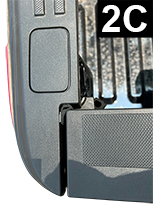Cut a 2.5" (6.35cm) piece of Standard Tailgate Seal. Before removing liner, determine positions so that bottom of seal is flushe with rubber stop and bulb is facing forward (FIG 2A, 2B and 2C). Apply Adhesion Promoter to the non-painted surface.