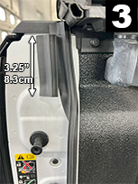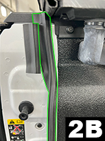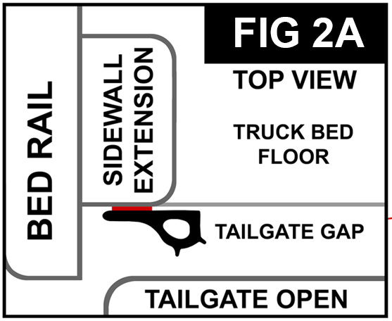 Cut a 3.25” (8.3cm) piece of Standard seal. Remove liner and attach as shown in (FIG 2B and 3). Close tailgate. If you see light through the sidewall, make adjustments by removing seal and repositioning. Apply very firm pressure (25lbs.) to secure adhesive.