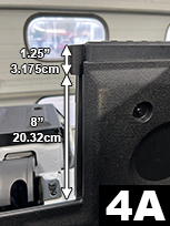 Cut a piece of Standard seal to 8” (20.3cm). Peel off liner and begin attaching near the bottom of sidewall and with bulb side facing to the center. (FIG 4 and 4A). Continue up and flush to bottom of 1.25” (3.2cm) seal at the top. Close midgate. If you see light through sidewall, make adjustments by removing seal and repositioning. Do not attempt to remove or reposition the 1.25” (3.2cm) seal (at top of midgate) where adhesion promoter was applied. Once seal is positioned apply very firm pressure (25lbs.) to secure adhesive bond.