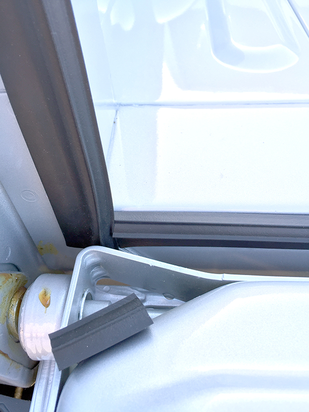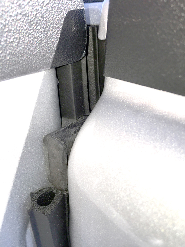 If compressing too much, then invert 1” piece so that bulb side is down. Raise tailgate again and make sure no light is visible through the 1” piece. Adjust 1” piece higher or lower in the gap, as needed, to block the light.