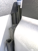 To evaluate the best positioning for the tailgate gap, cut a 1” (2.5cm) test piece and align the top of bulb with the truck bed floor. Stand to the side of truck and raise tailgate until the bulb makes contact with tailgate. If the bulb rolls downwards just before closing tailgate, so that you can see the tape, then seal has rolled and compressed too much. This can cause added stress to the adhesive and possible separation.