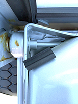 Cut and attach a 1.500" (3.8cm) piece to the top of sidewall. Attach so that bulb is facing inward and the taped side of seal is flush with the sidewall (FIG 1B). Apply light pressure to adhesive. Duplicate for right sidewall.