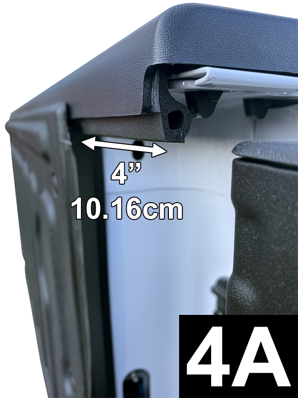 Cut a 4“ (10.16cm) piece of Tailgate Seal and apply to inside top of left tailgate rail (4A and 4A Alternate View). Apply light pressure to adhesive.