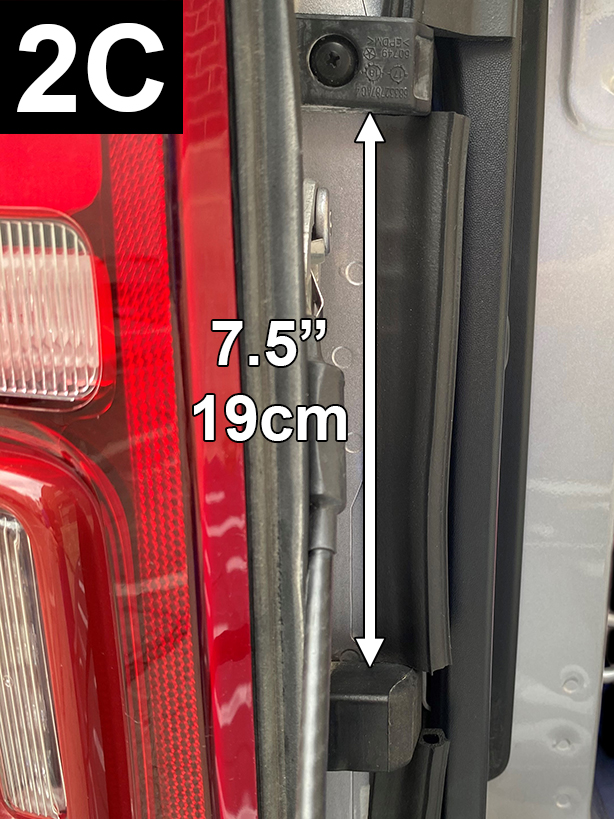 Continue up from the top of rubber stop, approximately 7.5” (19cm) and flush seal to next rubber stop and cut to fit (FIG 2C). Apply light pressure to adhesive. Duplicate for right sidewall.