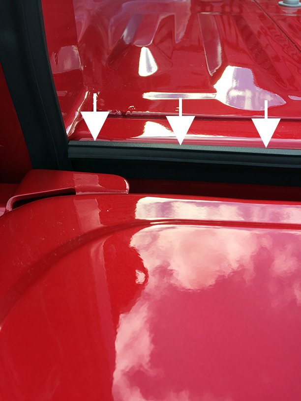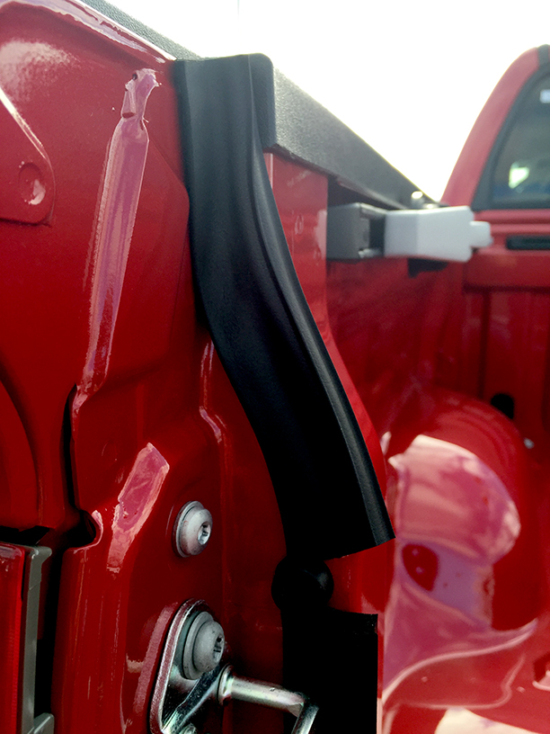 NOTE: Compression and/or slight rolling of the bulb is okay, however, if the bulb rolls downwards too much as the tailgate is closing and you can see the tape, then seal has rolled too much. This can cause added stress on the